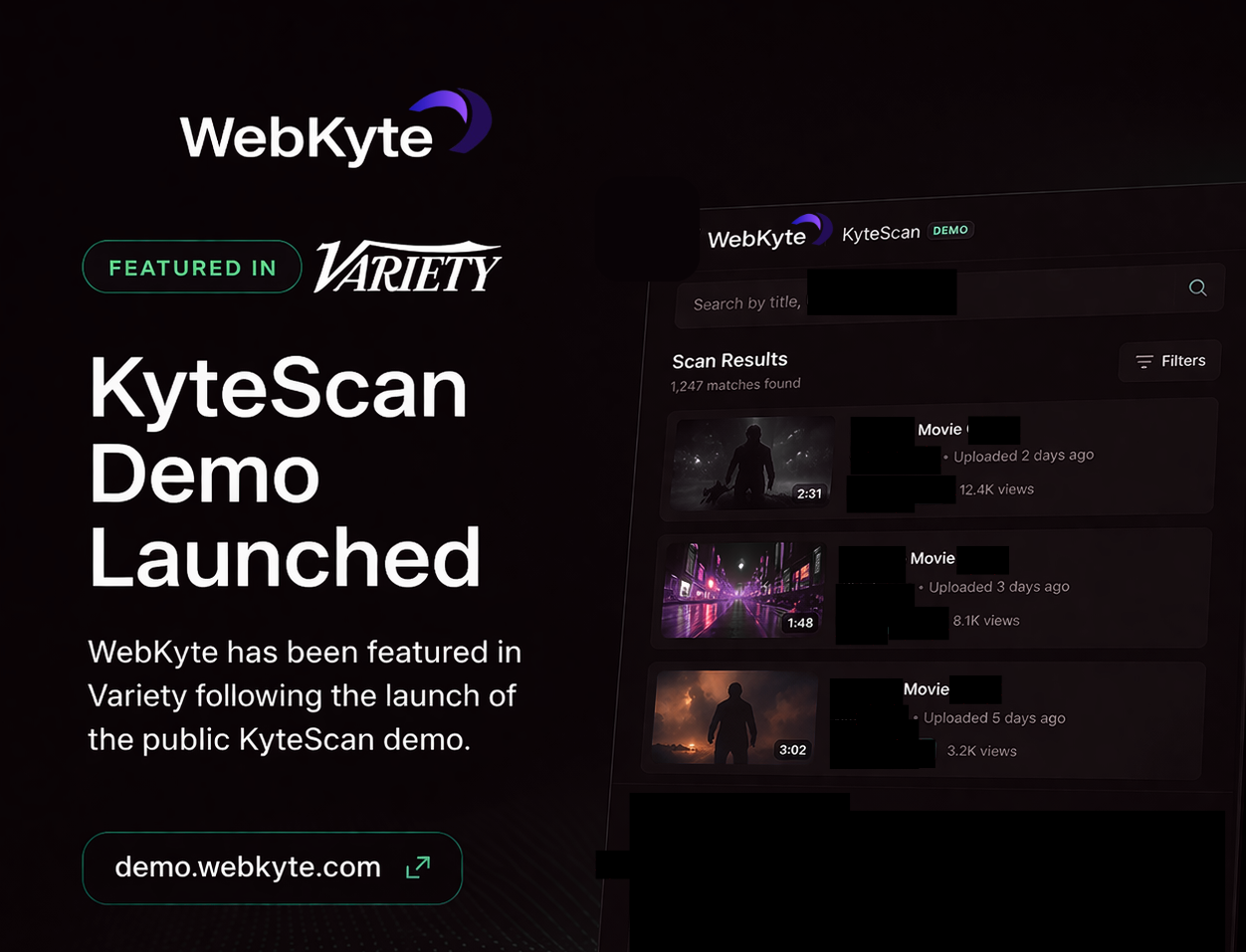 KyteScan Demo Now Available to the Public WebKyte has been featured in Variety following the launch of its public KyteScan demo, marking an important step in making its content protection ...
